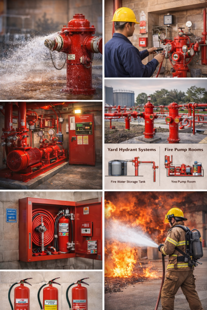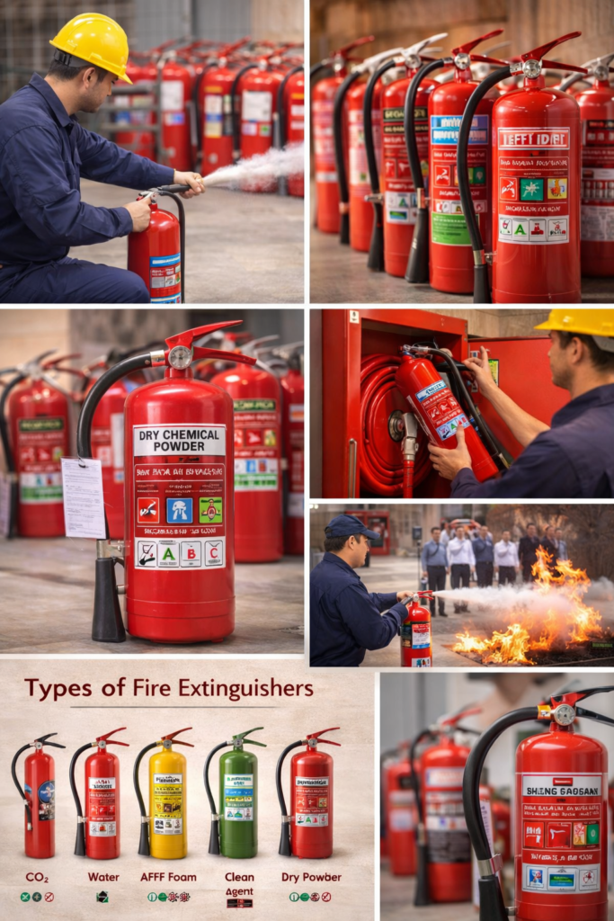 - Fire extinguishers (ABC, CO₂, Water, Foam, Clean Agent)